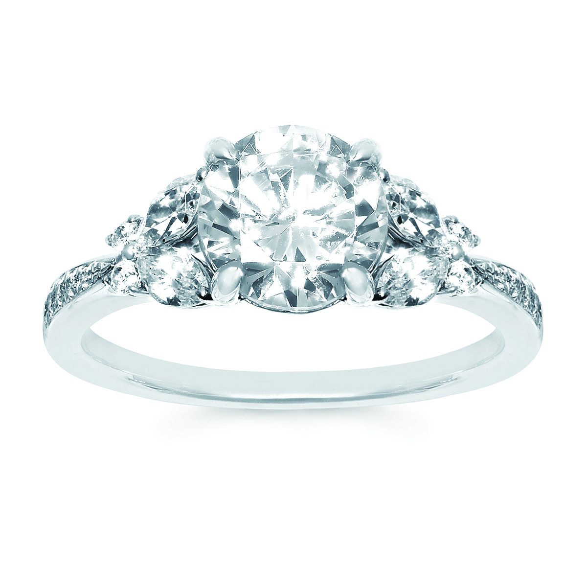 Engagement Ring Classic Bridal: 1/2 Ctw. Diamond Semi Mount shown with 2 Ct. Round Center Diamond in 14K Gold